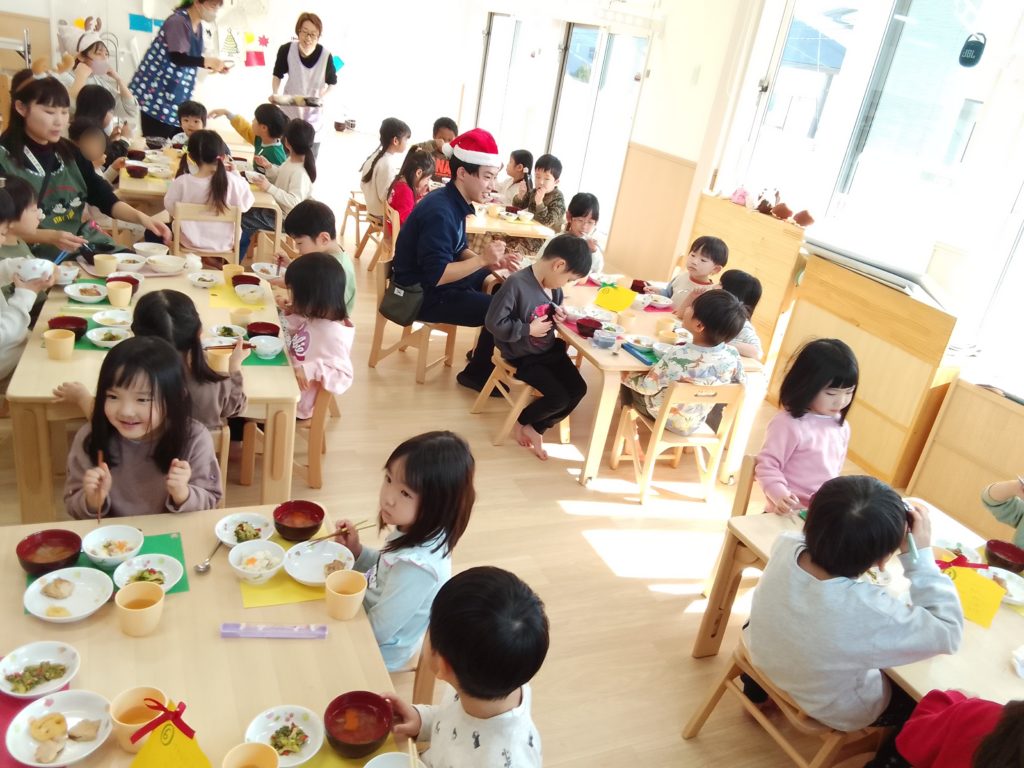 その手紙を受け、さらに子ども達はクリスマスの遊びを楽しみ、給食はみんなで一緒にパーティーをして特別な時間を過ごしました。