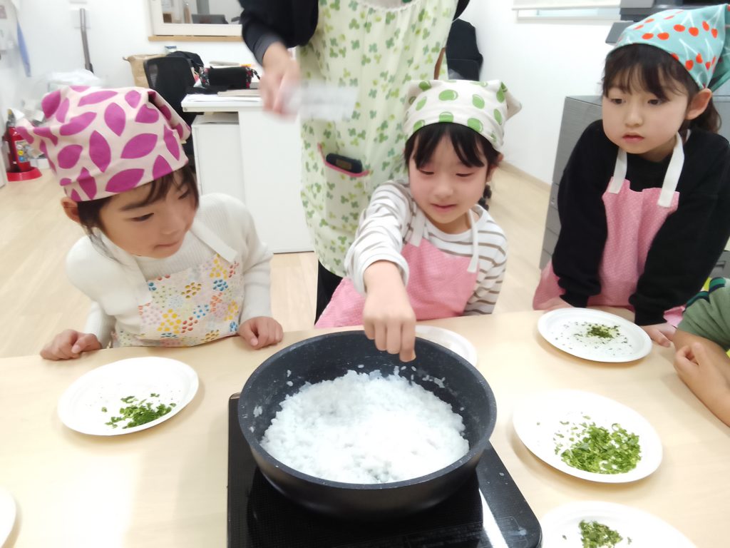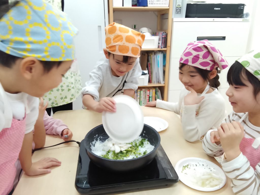 「七草がゆ」が完成し、思わず「わ~~~~」と歓声を上げた子ども達