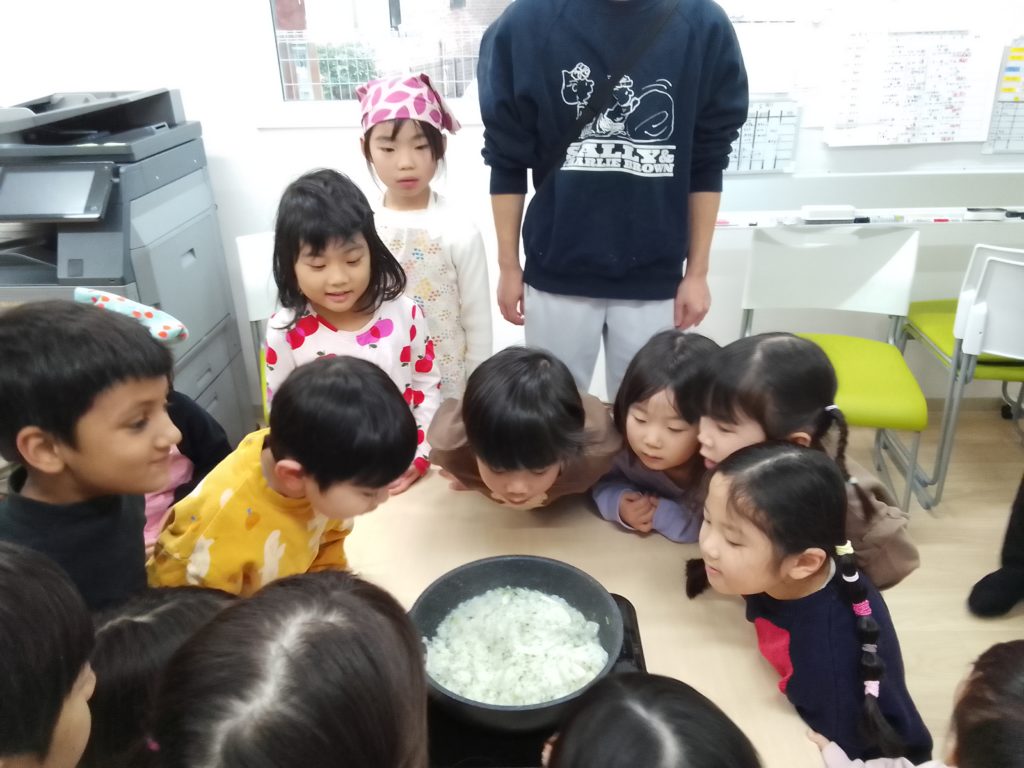 水から炊くおかゆは、水分を吸ってふっくらすること、そこから立ち込める甘い香りに「いいにおい」とその香りを感じました。