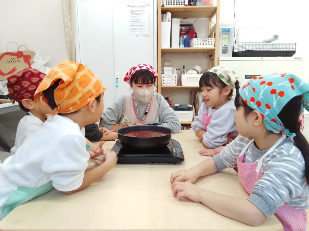この日、2日でさらに食への興味が高まったHakuの子ども達は、全員が、自ら書いたレシピを持ち帰り、連休の間に、おうちの方にお願いをして、おうちでお汁粉を一緒に作り、食べたそうです。