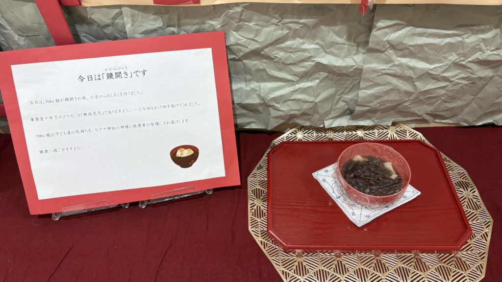 たくさんの学びのあった七草がゆ作りから2日後・・・園の鏡開きが行われる日。