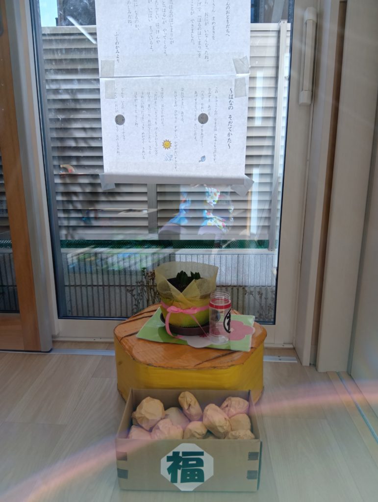 福の神が届けてくれた春の蕾が、花咲く日を待つように、この行事での経験が、子ども達の心の蕾を少しずつ温め、育ち、ふんわりと膨らんでいつか花を咲かせ、誰かの心を温める日を心待ちにしたいと思います。