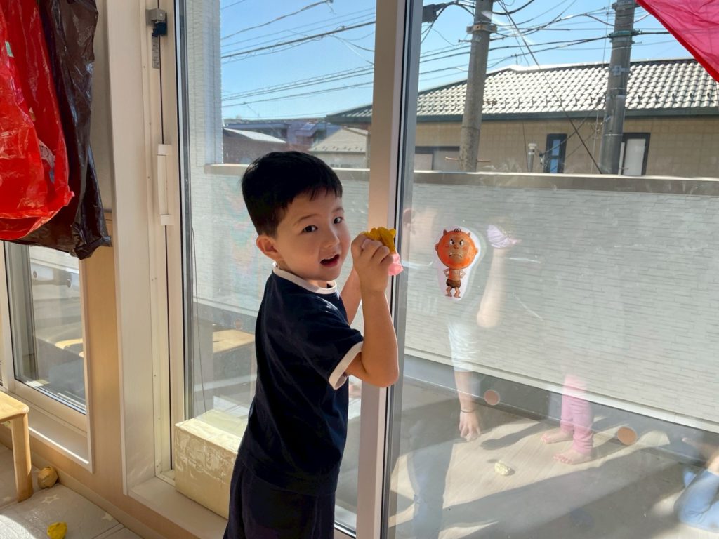 そして、豆まきのあと、「鬼と友達になったんだ」と壁にいた鬼を手の平に貼り嬉しそうに過ごしていました。