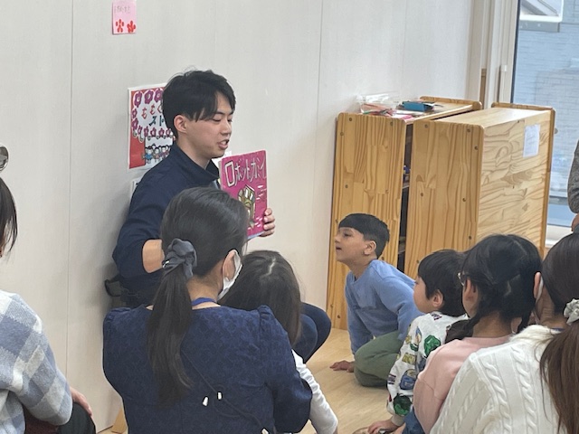 そんなAlo組がこの日の一冊に選んだのは、廃材で作られたカミイが友達とおみせやさんごっこをしながら、友達の存在に気づき始める「ロボットカミイ」というお話でした。