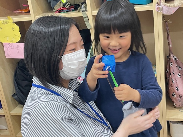 また、繰り返しながら、ステップアップしていく折り紙での遊びで、子ども達は粘り強さと達成感を経験し、今でもその子の自信となっているように思います。