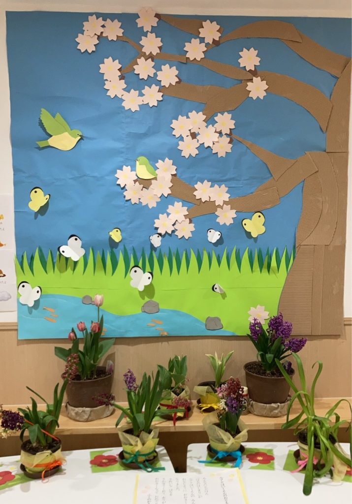 歌や絵本、園庭で遊びながら感じる春、そして散歩先の公園で咲き始めた春の花を感じながら毎日を過ごし、春が近づいていることを知りました。