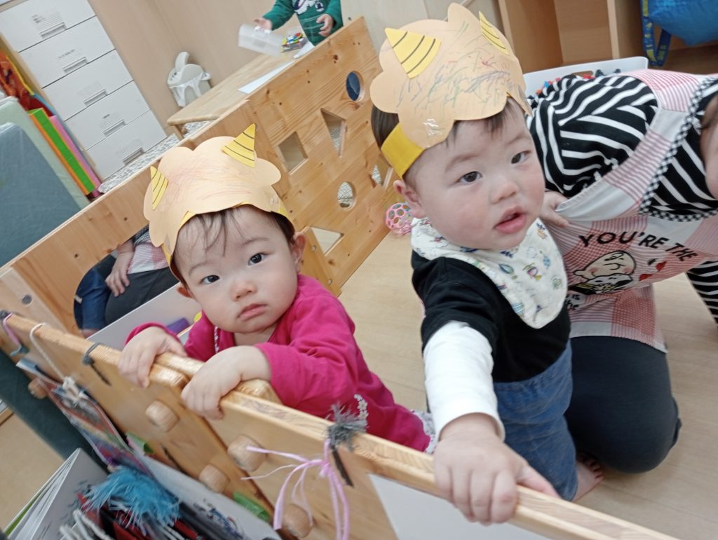 2月2日が近づき、節分という行事に自ら気づくようにと壁には色とりどりの鬼が飾られました。