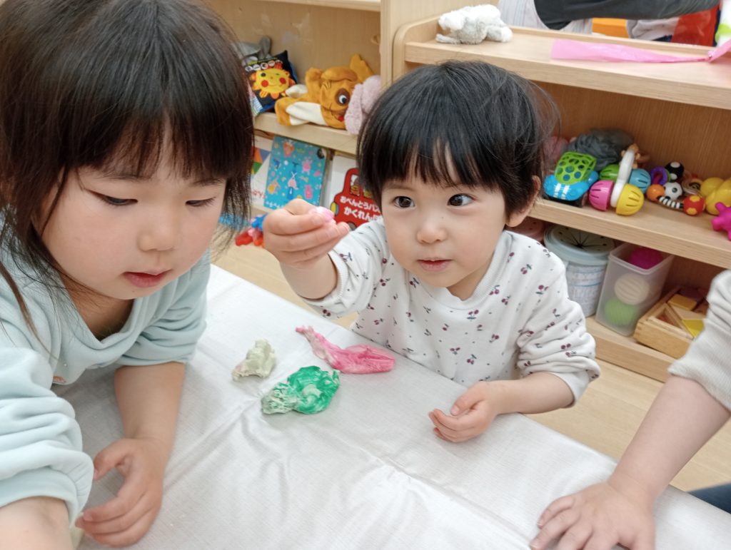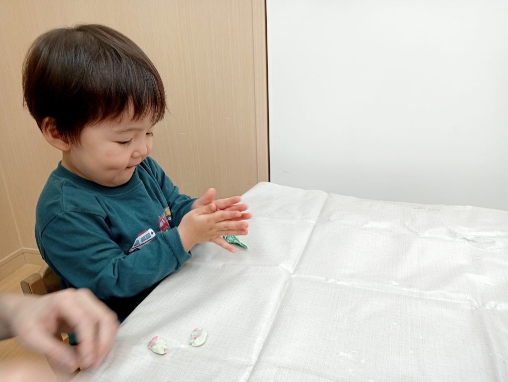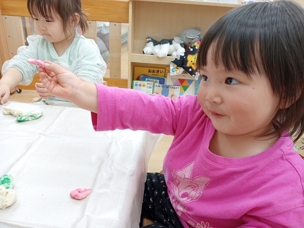 「これ、わたしの!」「ぼくのはこれ!」と嬉しそうに作品を指さす姿から、子どもたちの達成感や満足感も感じられました。