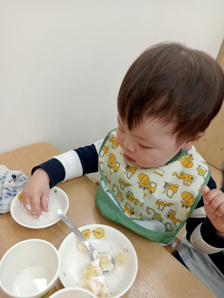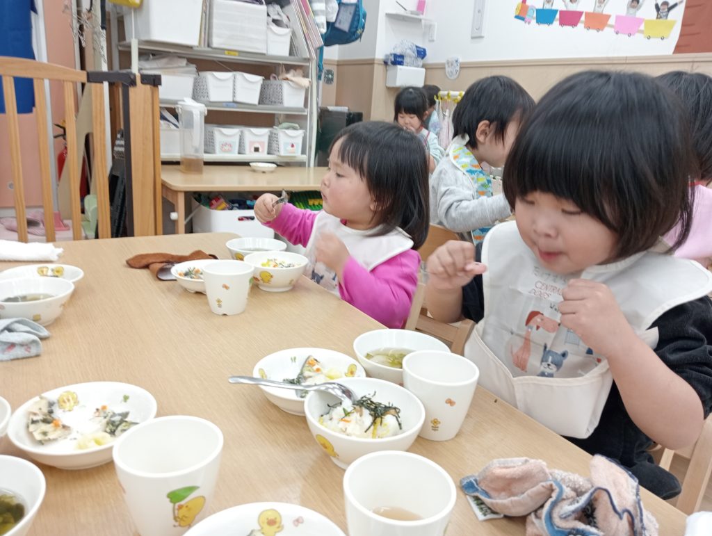 絵本と通してそんな新たな出会いに「これなに?」という表情で先生に伝え、やりとりを楽しみながらひな祭りに関する事柄や「お雛様」や「お内裏様」など新たな言葉を知ることなりました。