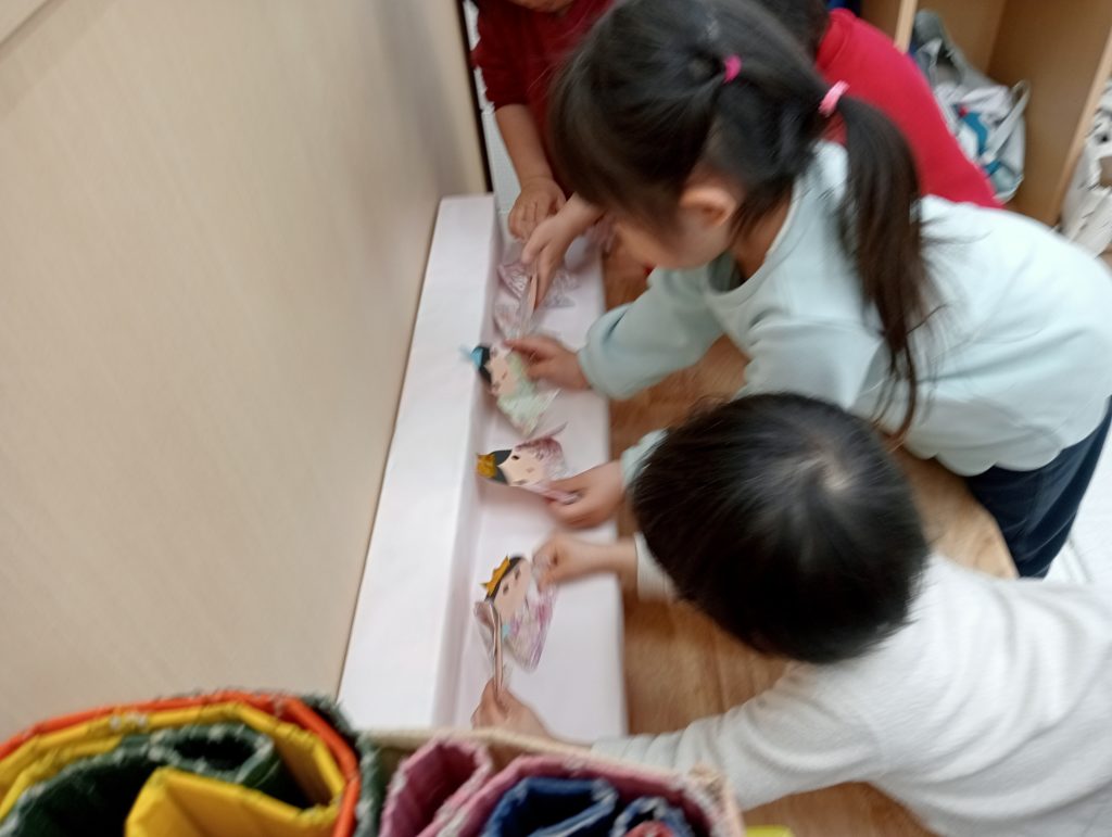 完成した飾りを見ていると、三人官女や五人囃子がいなことにも気づき、今度は「三人官女がいない!」「五人囃子もつくりたい!」という声があがり、この遊びがさらに広がっていきました。